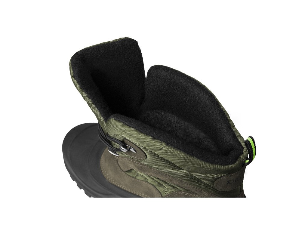 Boty Delphin GATOR jsou určeny na extrémní výpravy zejména v chladnějších obdobích roku. Zvýšený gumový lem podrážky sahá až do výšky kotníků, to znamená, že chůze v loužích, rozbředlém sněhu a blátě není pro GATOR problém. Tato pryžová část se navíc velmi dobře čistí. V zadní části gumové části boty se nachází výstupek, díky kterému si botu bez problémů zujete. Svršek boty je tvořen kombinací odolné nylonové látky a umělé kůže. Tyto materiály dobře odolávají nepřízni počasí a jednoduše se v případě potřeby impregnují. Jazyk boty je přišitý až do výšky 17cm, to znamená, že krátkodobě se můžete pohybovat v takto hlubokých vlhkých oblastech. Šněrování je řešeno přes textilní očka, na vrchu šněrování se nachází jedno kovové oko. Vnitřek boty je tvořen příjemným mikrofleecovým materiálem. O tepelné pohodlí se postará vrstva umělého mikrovlákna mezi vnější a vnitřní vrstvou. Černo-zelenou kombinaci materiálů ocení nejen rybáři, ale i myslivci, turisté a všichni ostatní milovníci přírody. I přes svou mohutnost jsou boty velmi lehké, což jistě přijde vhod při dlouhodobější chůzi. Například obě boty velikosti 43 váží pouze 1200g.