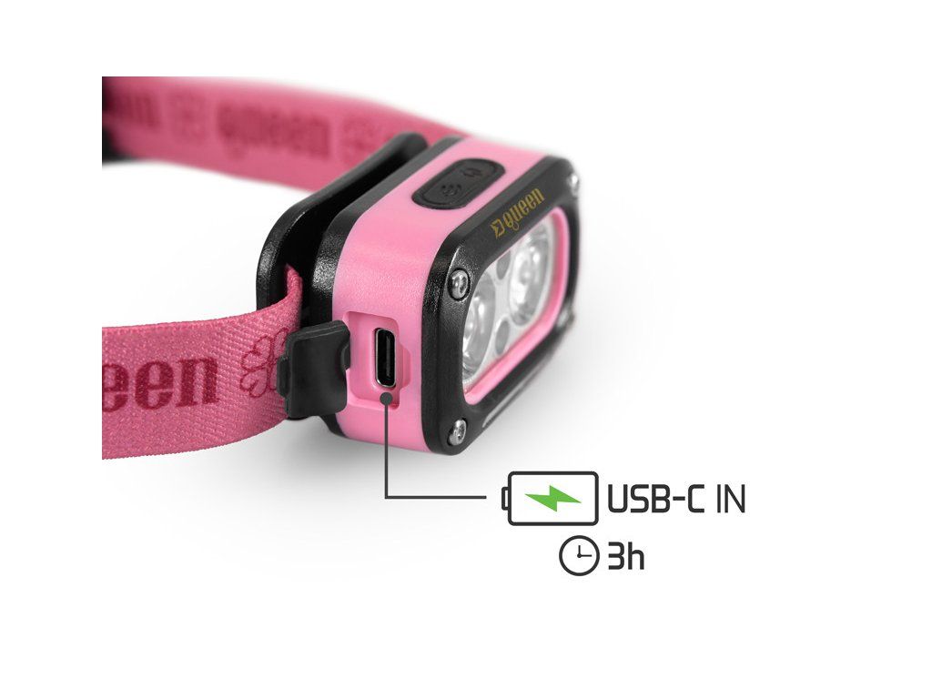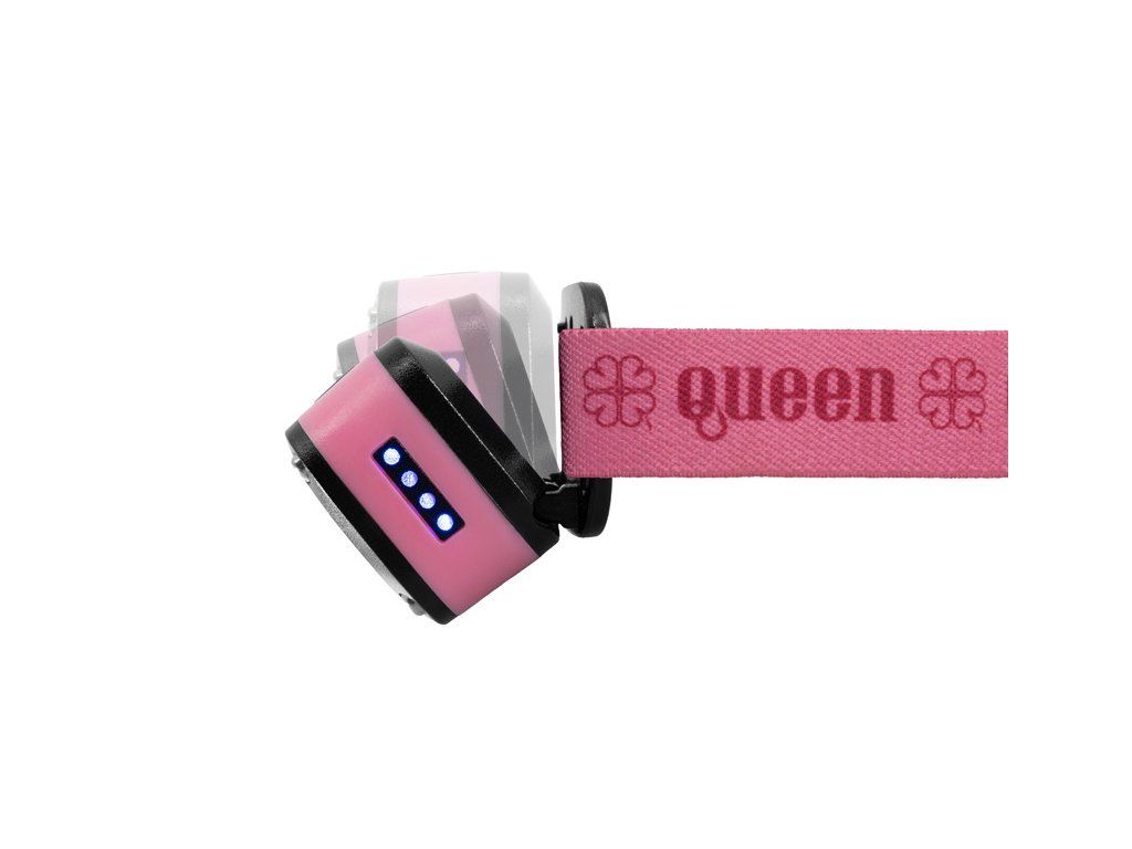 Na vrchní straně se nacházejí dvě tlačítka pro ovládání světelných režimů a pohybového senzoru. Čelovka disponuje dvěma hlavními LED diodami, které nabízejí bílé a originální růžové světlo. Po prvním stisku se rozsvítí bílé světlo v úsporném režimu (55 lm) s výdrží až 7 hodin. Následné kliknutí aktivuje maximální výkon (115 lm) s výdrží 3 hodiny.