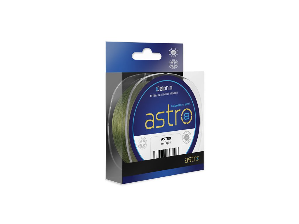 Splétaná šňůra pletená z osmi PE vláken do kulatého průřezu. Vyznačuje se vysokou odolností vůči oděru a silou v uzlu. Šňůra ASTRO 8 je dokonale hladká díky těsnému pletení jednotlivých vláken. Má nulovou průtažnost, a tak bude detekce záběrů okamžitá. Povrch šňůry je potažen speciálním povlakem, díky kterému je velmi jemná, má velmi malý odpor ve vodě a je také méně hlučná. Díky široké paletě průměrů si na své přijdou vyznavači všech stylů přívlače a feederu. MM/LBS: 0.08mm/10.6lbs, 0.10mm/13.2lbs, 0.13mm/16.9lbs, 0.15mm/20.9lbs, 0.17mm/24.2lbs, 0.21mm/31.2lbs, 0.23mm/36.3lbs, 0.27mm/44lbs, 0.33mm/57.2lbs