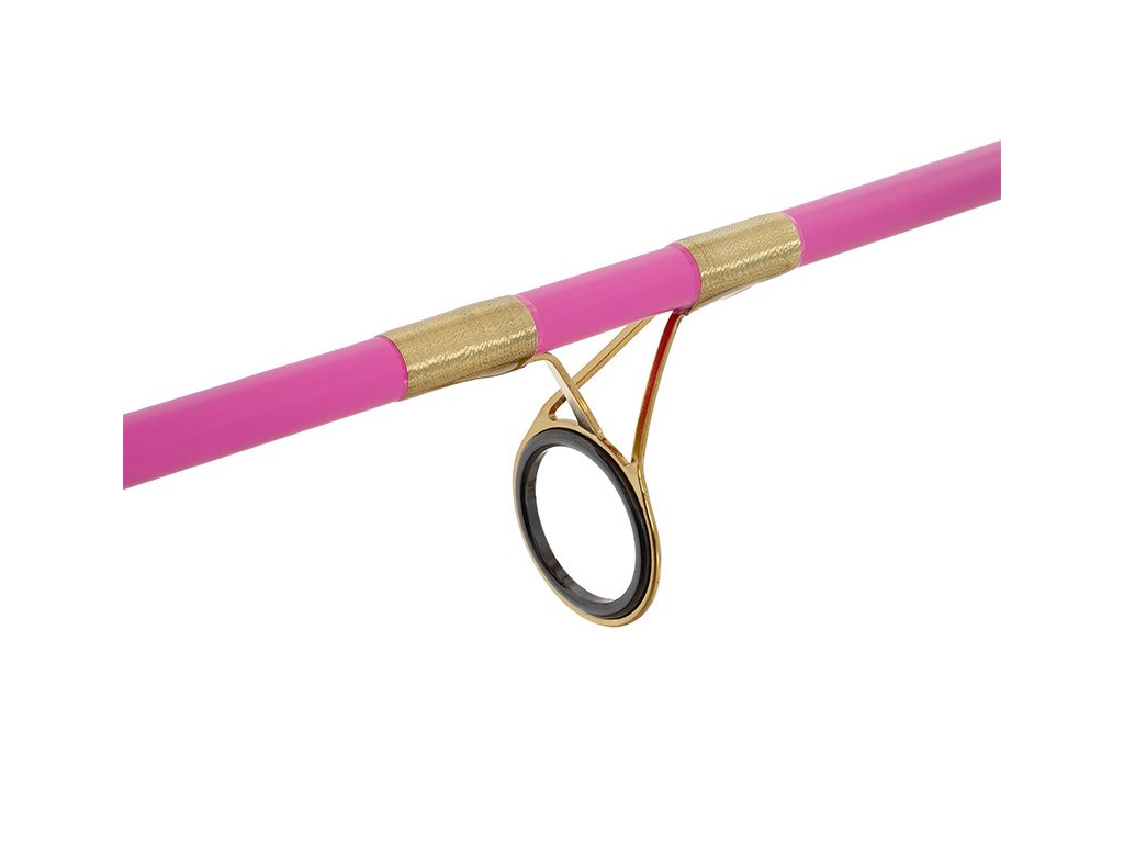 Štíhlý blank prutu se semi-parabolickou akcí vám usnadní nahazování a také zdolávání vašich úlovků. Pohodlné sedlo navijáku spolehlivě udrží na svém místě i větší navijáky a na první pohled zaujme svým provedením ve výrazné růžové barvě. Detaily jako zlatý kroužek s vinutím nad sedlem či růžová EVA pěna ve spodní části jen podtrhují jedinečný design tohoto prutu.