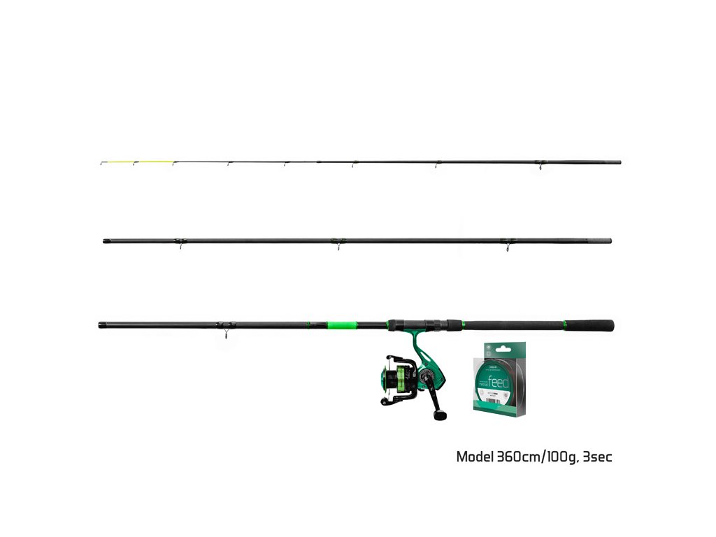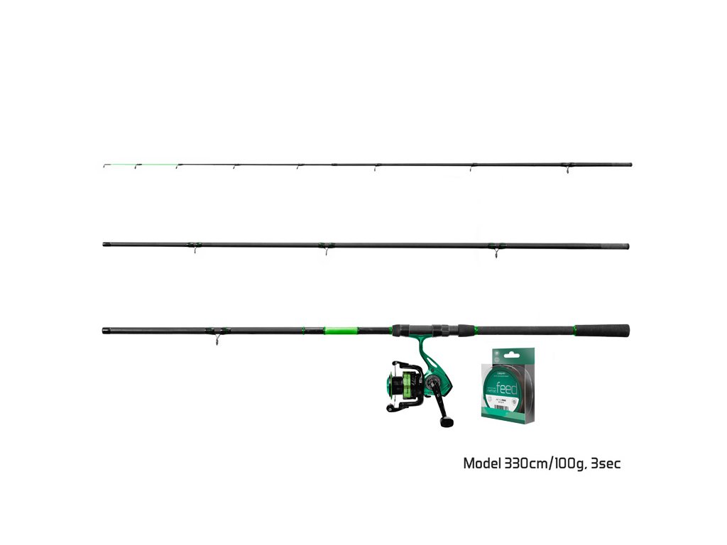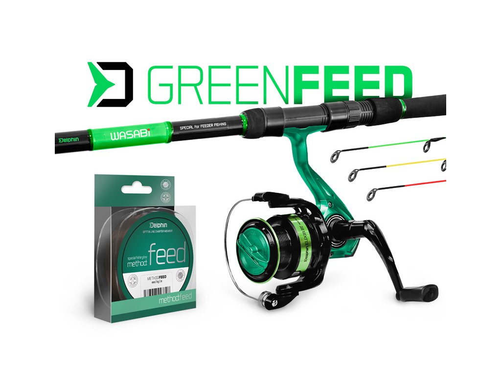 Pokud se neumíte rozhodnout, jak si zkombinovat spolehlivou feederovou sestavu, tak přesně pro vás je zde feederový set Delphin GreenFEED. Set se skládá z třídílného prutu Delphin WASABI Feeder, blank je vyroben z ideálního poměru kompozitních materiálů. Rukojeť z EVA pěny padne do ruky při zdolávání i nahazování. Akce prutu je příjemná a bonusem jsou očka s keramickou výplní. K prutu jsou samozřejmě přibaleny také tři náhradní špičky (1x Light, 1x Medium, 1x Heavy). Svým zeleno-černým provedením dokonale zapadne do setu naviják Delphin ELIXIR. Tělo z lehkého kompozitního materiálu zaručuje dlouhou životnost. Kuličková ložiska v počtu 3+1 spolu s převodovým poměrem 5,0:1 a mechanismem s vyváženým rotorem zaručí tichý a plynulý chod s důkladným ukládáním vlasce. Kapacita cívky je dostatečná k dané rybolovné technice, při průměru vlasce 0,18mm se vejde na cívku až 275m vlasce. Samozřejmě, aby byl set kompletní, tak nesmí chybět vlasec Method FEED s minimální roztažností, což vám zaručí rozeznat záběr i u těch nejopatrnějších ryb. Feederový set potěší široké spektrum rybářů, kteří se věnují rybolovné technice feeder. Technické parametry: Feederový set Delphin GreenFEED | 330cm/100g+3T+0,22mm obsahuje: Prut Delphin WASABI Feeder / 3 díly | 330cm/100g Naviják Delphin ELIXIR 3T | vel. 3000 Delphin METHOD FEED hnědá, 0,22mm 4,2kg 200m Feederový set Delphin GreenFEED | 360cm/100g+3T+0,22mm obsahuje: Prut Delphin WASABI Feeder / 3 díly | 360cm/100g Naviják Delphin ELIXIR 3T | vel. 3000 Delphin METHOD FEED hnědá, 0,22mm 4,2kg 200m