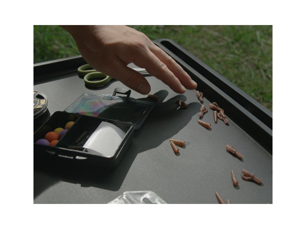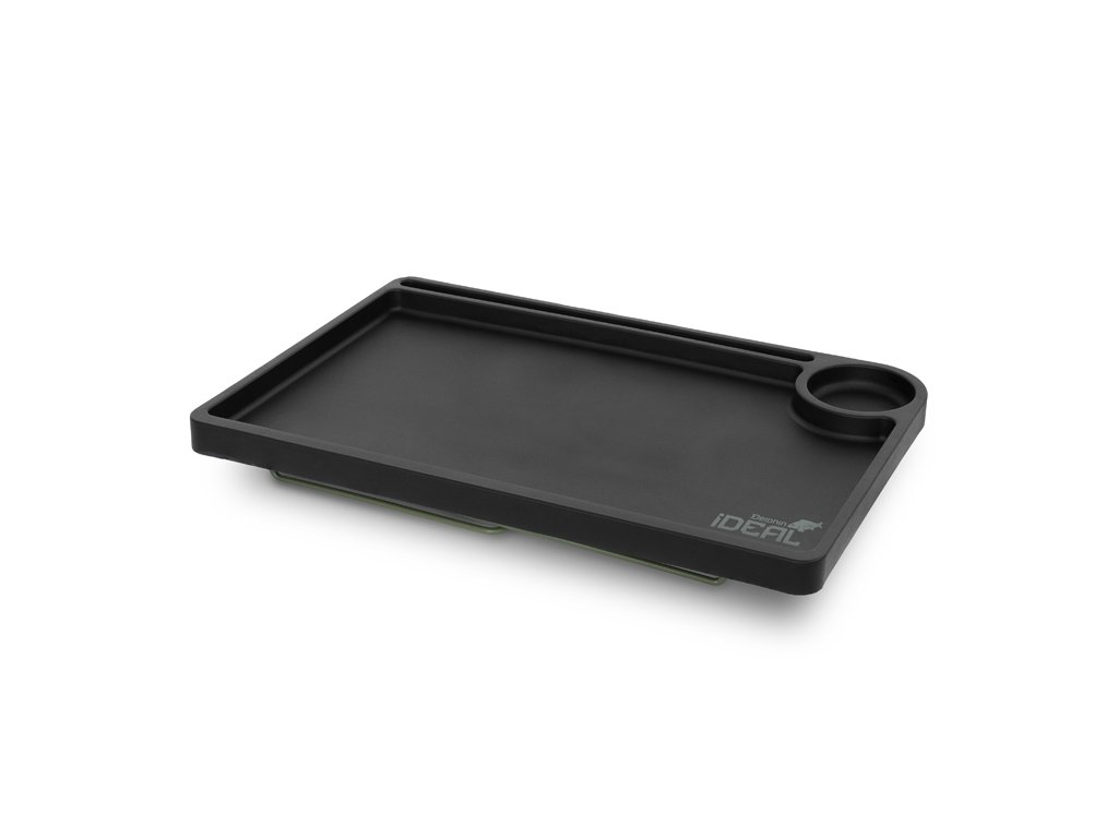 Jak už název napovídá, stolek Delphin iDEAL se stane vaším ideálním společníkem během vašich kaprařských výprav. Tento skládací stolek nabízí vše, co potřebujete – ať už k uschování výbavy v bivaku, nebo při přípravě koncových montáží. Vrchní deska je vyrobena z odolného plastu a po celém obvodu je vybavena zvýšeným okrajem, který účinně zabraňuje nechtěnému padání drobných předmětů ze stolku. Na pracovní ploše se nachází úzká podélná přihrádka, ideální pro bižuterii nebo hotové koncové montáže, které potřebujete mít po ruce a zároveň zamezit volnému pohybu po stole. Pracovní plocha je navíc doplněna o kulatou přihrádku, vhodnou pro odložení sklenice, případně termosky. Stolek disponuje sklápětelnýma nohama, díky čemuž po jejich složení nabývá velmi kompaktní transportní rozměry. Praktické úchyty na spodní straně desky zabezpečují fixaci nohou v rozloženém i složeném stavu, čímž předcházejí jejich nechtěnému pohybu během manipulace nebo přepravy. Technické parametry: Rozměry: 52x35 cm Výška: 24 cm Výška vyvýšeného okraje: 2cm Transportní rozměry: 52x35x7 cm Hmotnost: 910 g