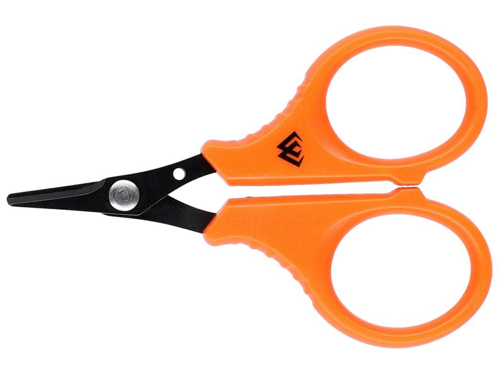 Kompaktní nůžky na pletenku s ostrým ostřím pro snadné stříhání pletených materiálů, fluocarbonu, nylonu i olověných šňůr. Vysoce viditelná oranžová rukojeť snižuje riziko ztráty. Rozměrově ideální pro uložení do boxu s bižuterií.