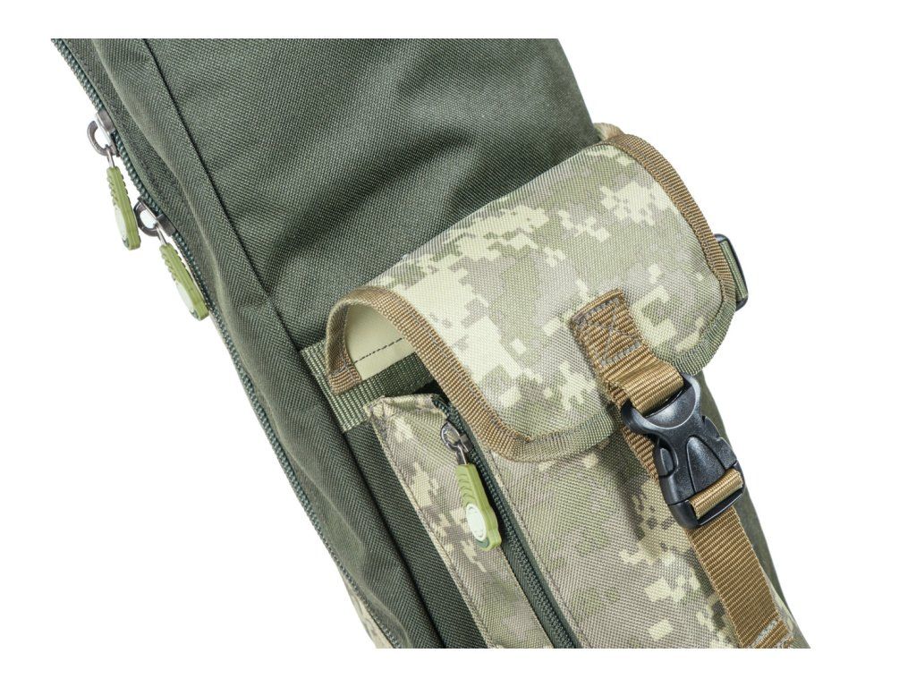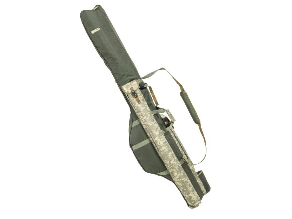 Efektivně řešený obal pro transport dvou až čtyř prutů s navijáky. Dvě polstrované komory s vnitřními přepážkami zajišťují ochranu pro pruty s namontovanými navijáky. Boční kapsy jsou navrženy pro transport vidliček, podběráku, deštníku a dalšího příslušenství. Obal je vyroben z odolného, nepromokavého a snadno omyvatelného materiálu B-POL600D v designu série CamoCODE.