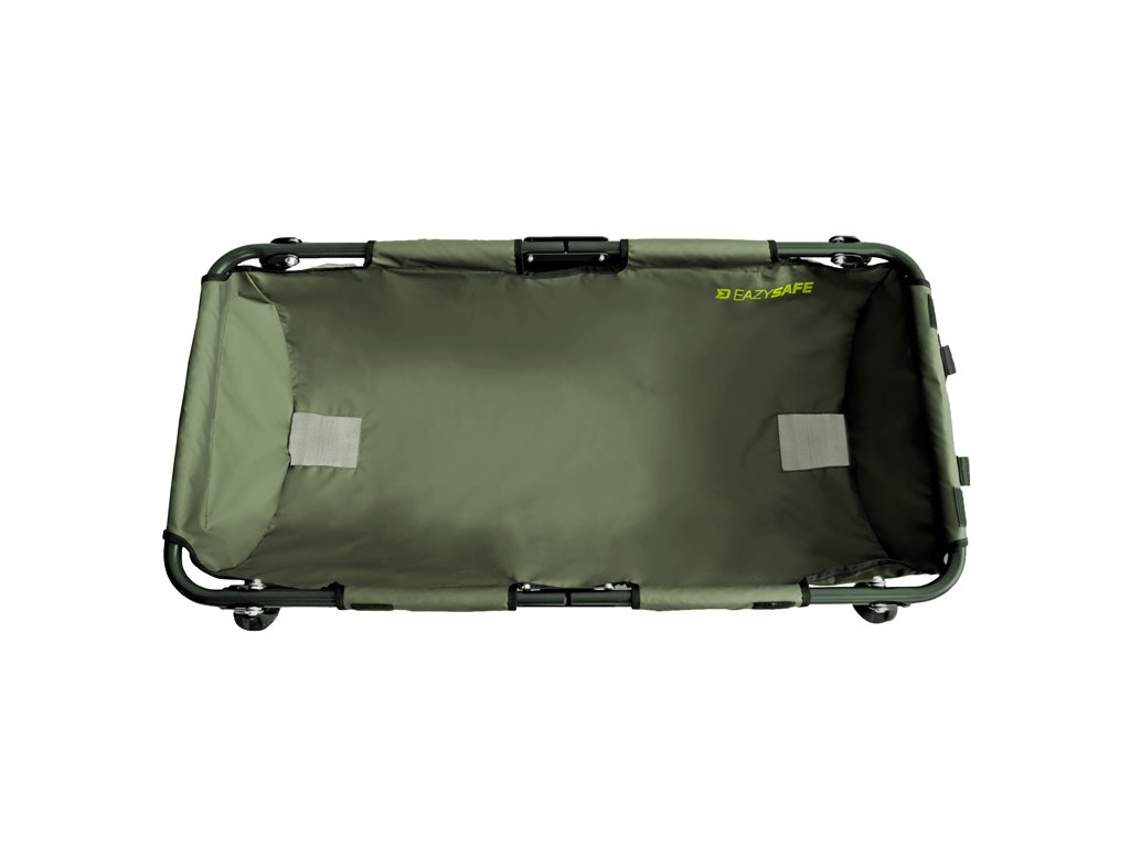 Díky tomu má vanička výbornou stabilitu a nehrozí její převrácení, případně poškození při manipulaci s úlovkem. Použitá látka s pogumovaným povrchem má několik výhod. Po ukončení lovu ji stačí do sucha vytřít a není tak nutné dlouho čekat dokud vyschne. Navíc je velmi snadno omyvatelná a neabsorbuje do sebe nepříjemně pachy, které se mohou následně šířit při transportu ve vašem autě. Celá vanička je velmi pevná a při extrémních testech bez problémů zvládla udržet statické závaží o váze až 75kg! Na obou krajích je všitá sítová látka, přes kterou zevnitř lehce odteče voda. EAZYSAFE také disponuje látkou na překrytí, která je opatřena suchými zipy. Můžete tak v ní rybu uzavřít, pokud si například potřebujete připravit fotoaparát, případně jít nabrat vodu na polití úlovku. Nohy jsou opatřeny kloubovými patkami, které se přizpůsobí terénu a zamezí zaboření do země v případě měkčího podkladu. Při navrhování jsme však mysleli i na transport, což je další silná stránka tohoto produktu. Ve středu je konstrukce důmyslně předělena a tak ji stačí jednoduše přeložit napůl a pomocí rukojetí pohodlně přenášet. V produktu Delphin EAZYSAFE získáte za výbornou cenu jednoduchou, ale zato důkladně promyšlenou a 100% funkční vaničku, v níž se o svůj úlovek nebudete muset nikdy obávat. Technické parametry: Vnější rozměry: 100x50x30cm Rozměr lůžka: 95x45x20cm Transportní rozměry: 50x50x12cm Hmotnost: 3,60kg