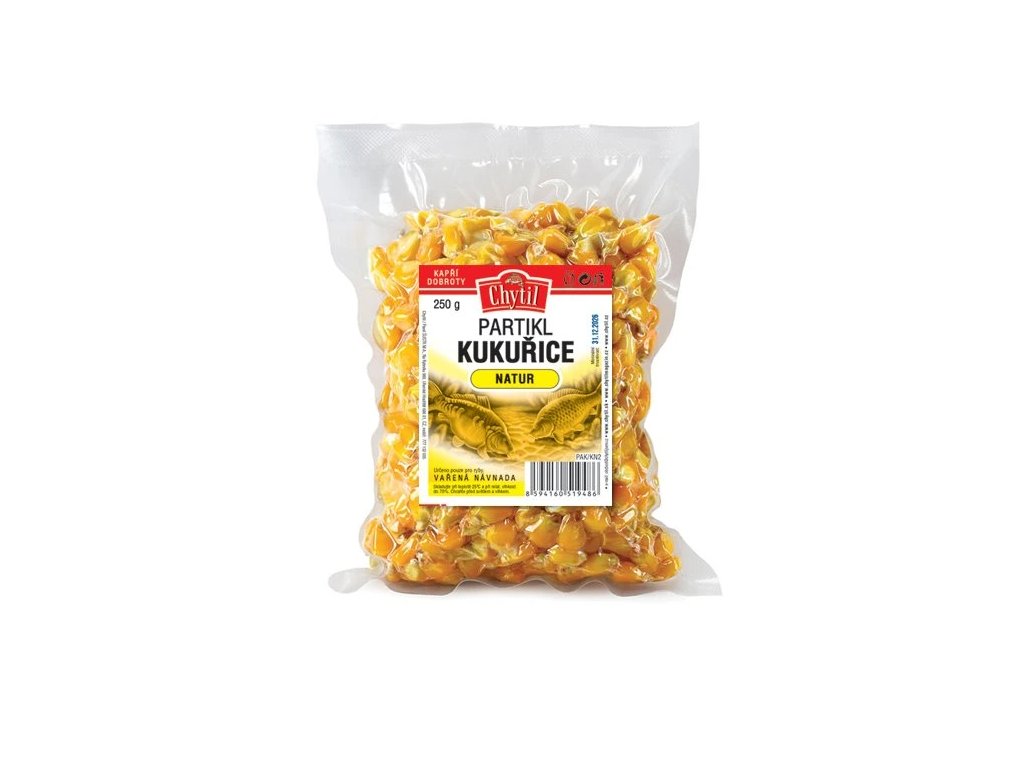 Vařená kukuřičná zrna jsou oblíbenou pochoutkou nejen pro kapry, ale také amury a další ryby. Balení 250g