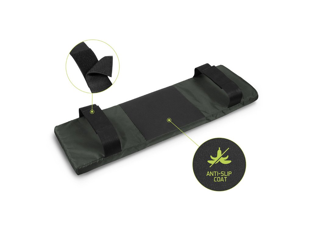 Na spodní straně se nachází protiskluzová pryžová plocha, která se stará o dokonalou přilnavost k povrchu lavičky. Dva popruhy se suchým zipem umožňují rychlé upevnění k jakékoli standardní lavičce člunu.