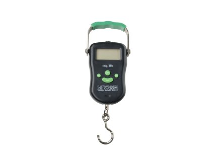 Luxusní digitální váha s masivními sklápěcími rukojeťmi, pevnostním závěsným okem a kvalitní karabinou pro zavěšení vážícího saku.